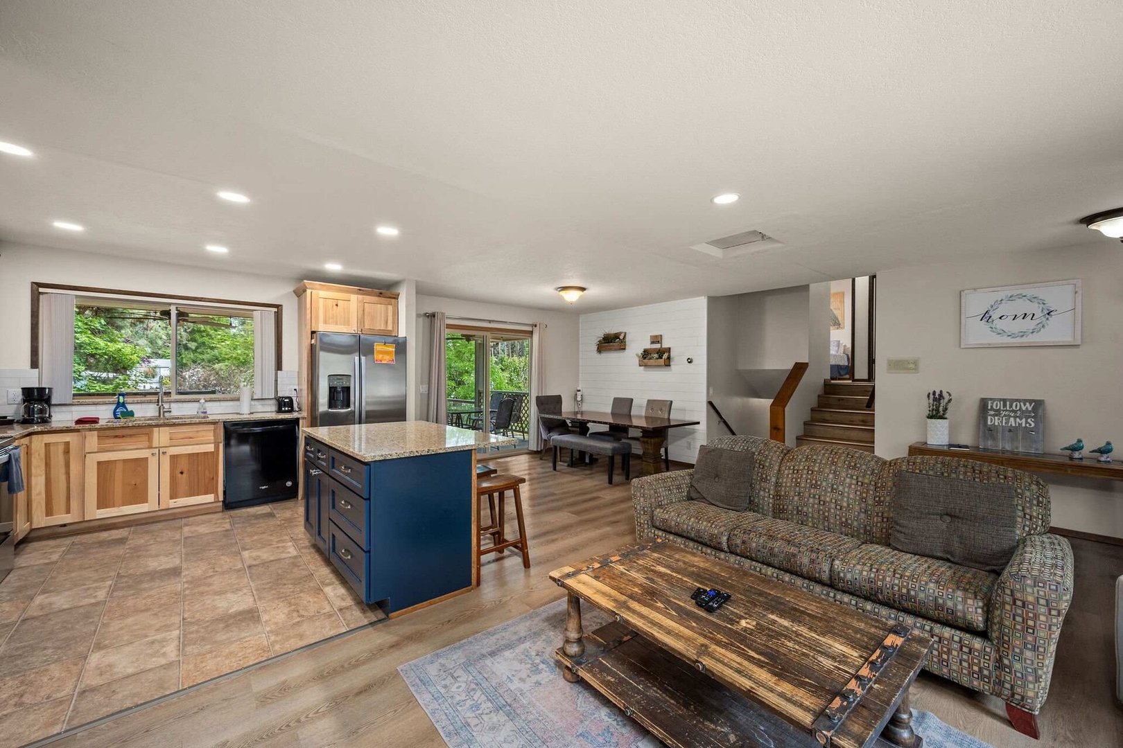 Main living area was recently opened up making it larger and more inviting. Area has a 55" smart TV that tenants can watch their favorite programs on. Basement also has a 55" smart TV. Home is also supplied with shampoo and body wash as well! Home laundry unit has laundry detergent that can be used if tenants need!